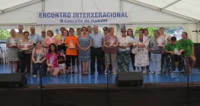 As sesións de zumba, musicoterapia, danza oriental, a actuación das Cantareiras do Val, de Jolly Jumper e dun grupo de acordeonistas amenizaron durante a mañá esta nova edición do “Encontro Municipal Interxeracional”. Antes de realizar unha parada para xantar, o alcalde e a edil de Promoción Económica entregaron uns agasallos aos representantes das entidades colaboradoras. Subiron a recollelos: Benedicta Fernández, da AVV “Virxe de Fátima”, de Freixeiro; Maribel Mauriz, da Sociedade Cultural Areosa; Carlos Rodríguez, da AVV “Chafarís”, do Alto; Paula Gárate, da Asociación Sociocultural ASCM; Diana Lata, dos Centros Comunitarios Municipais; Mariluz Sánchez, da AVV Santa Icía; Carmen Bellas, da AVV “Ceibe” de San Xiao; Noelia Couce, da AVV do Alto; Eva Blanco, da Asociación da Terceira Idade de Pedroso; Eva Castro, da asociación Bbtta; Ana López, da Fundación Terra de Trasancos; Ángeles Paz, do Club de Xubilados da Solaina; Brais Díaz e Amós García, de Aspanemi; Aurora Lage, da Asociación Nuestra Señora de Chamorro; Julia Montero, da AVV de Sedes; José Luis Escudero, da AVV Virxe do Mar; Teresa Taboada, do Círculo de Xadrez Narón; Adolfo Mira, da Asociación de Torneiros de Madeira “Virutas”; Beatriz López, da asociación Gaikai; Elena Varela, da AVV da Gándara e Consuelo Fernández, de Mulleres Rurais de Ferrerías.