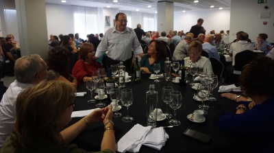 Narón, 7 de outubro de 2017. O exalcalde de Narón, José Manuel Blanco, recibiu no mediodía de onte un agarimoso recoñecemento do persoal do Concello no transcurso dunha comida celebrada nas instalacións dun restaurante da cidade. Máis dun centenar de persoas quixeron acompañar a Blanco participando nesta convocatoria, organizada pola Xunta de Persoal do Concello con motivo da súa recente xubilación, que se formalizou nun pleno celebrado o pasado 23 de setembro.
