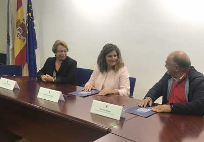 Narón, 17 de outubro de 2018. A alcaldesa de Narón, Marián Ferreiro, asinou esta mañá xunto con José Díaz, presidente da Fundación Terra de Trasancos, do Val, un convenio de colaboración por un importe de 20.000 euros. Ao acto, que tivo lugar no Concello, asistiu tamén a concelleira de Promoción Social e Igualdade, Teresa Sabio.