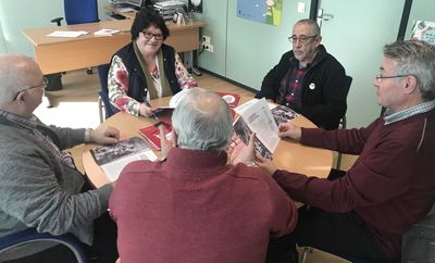 Narón, 15 de novembro de 2018. A concelleira de Cultura, María del Carmen Espada, reuniuse con representantes da Asociación Memoria Histórica Democrática, para entregarlles exemplares da publicación “A pandemia de gripe en Narón en 1918”. O presidente da entidade, Manuel Fernández, o historiador Enrique Barrera e Eduardo Ponce e Fernando Ocampo, integrantes da citada asociación, amosaron a súa satisfacción polo resultado final desta publicación realizada con datos recompilados desde Asociación Memoria Histórica Democrática.