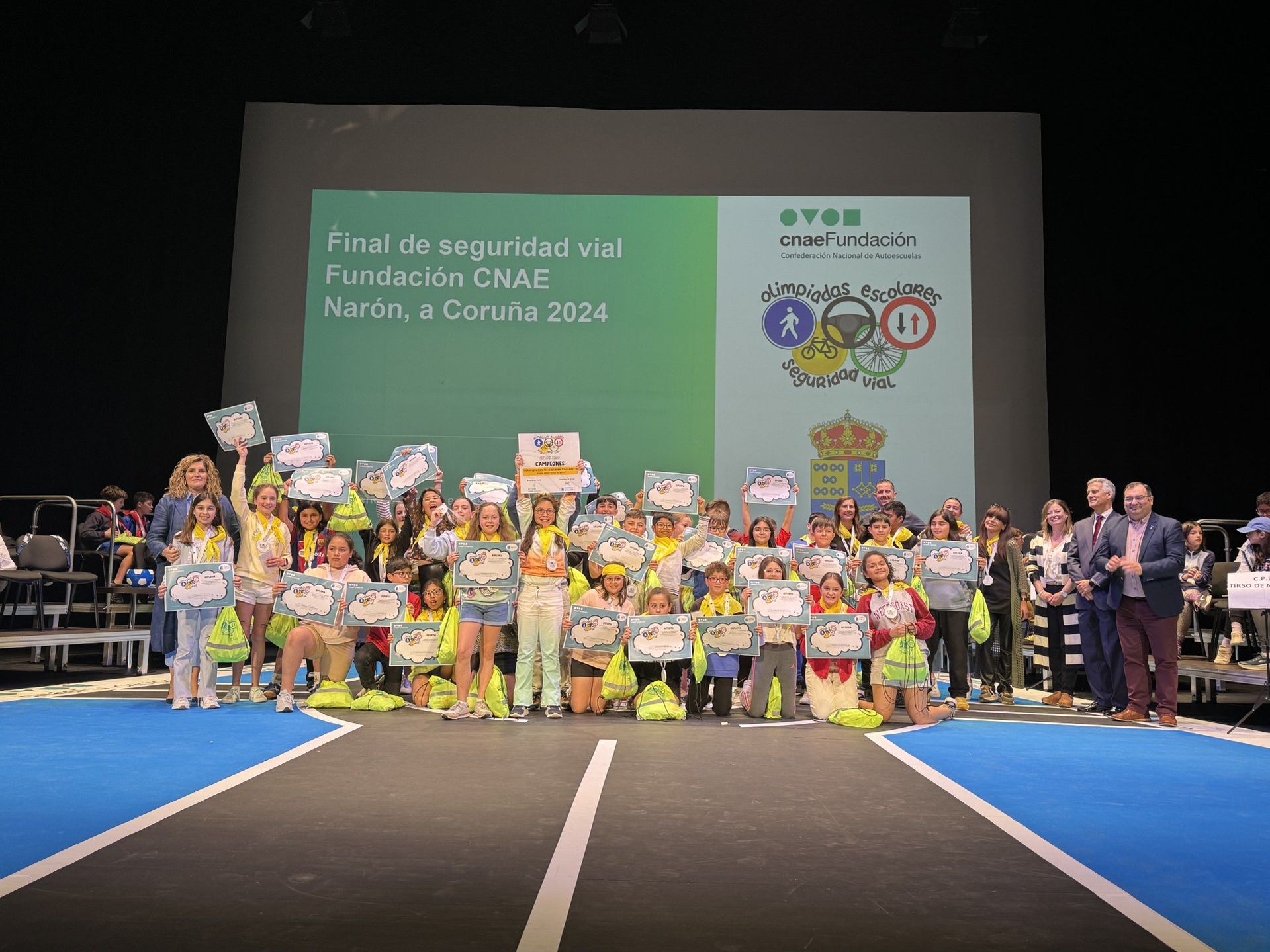 Antes de rematar o acto subiron ao escenario a Xefa provincial de Tráfico na Coruña, María Victoria Gómez, e o presidente da Confederación Nacional de Autoescolas, Enrique Lorca, que dirixiron unhas palabras ao público asistente e coincidiron en destacar a traxectoria de Narón en materia de educación viaria, calificándoa de “impresionante”. O equipo de Educación Viaria de Narón, Pedro Caneiro e Sonia López, foron tamén felicitados, polo traballo realizado, agradecendo “a oportunidade que sempre se nos da para traballar e desenvolver este tipo de iniciativas dende o Concello”.