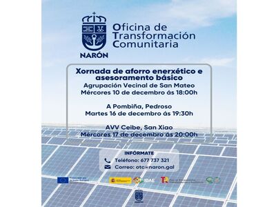 O Concello de Narón, a través da Oficina de Transformación Comunitaria (OTC), celebrará este mes tres novas sesións informativas gratuítas orientadas ao aforro enerxético nos fogares e á mellora da información da cidadanía en materia de electricidade.