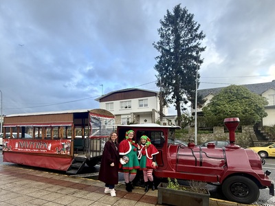A concelleira de Promoción Económica, Olga Ameneiro, asistiu á primeira viaxe deste tren decorado con motivos navideños, que funcionará de maneira continuada ata o 30 de decembro, e retomará o servizo os días 2, 3 e 4 de xaneiro, coincidindo cun dos períodos de maior movemento comercial do ano.