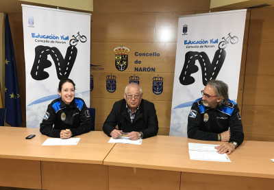 Narón, 30 de abril de 2018. O concelleiro de Seguridade Cidadá e Transporte Público, Guillermo Sánchez Fojo, presentou esta mañá acompañado por Pedro Caneiro e Sonia López, do equipo de Educación Viaria de Narón, os actos da Semana da Mobilidade e Educación Viaria do Concello de Narón. O programa desenvolverase entre os días 7 e 11 de maio e contempla actividades dirixidas a diferentes colectivos e que se convocaron en diversas instalacións e espazos públicos da cidade, tal e como subliñou Sánchez Fojo. O concelleiro naronés convidou á veciñanza a participar nesta convocatoria.