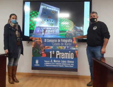 Narón, 27 de outubro de 2020. A concelleira de Turismo de Narón, Natalia Hermida, entregou esta mañá no Concello os premios do “XI Concurso de Fotografía Cidade de Narón”. Á cita acudiron os gañadores dos mesmos: Marcos López Alonso, veciño de Ferrol, que obtivo o primeiro (750 euros) coa súa imaxe “Narón é outro conto”; un veciño de Neda, Diego Pita Díaz, obtivo o segundo premio, valorado en 300 euros, pola fotografía “Narón seguro” e unha veciña de Bergondo, Rocío Carro Vázquez, gañou o terceiro, de 150 euros, coa súa imaxe “Amor pola lectura”.
