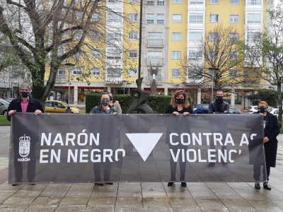 Narón, 25 de novembro de 2020. O Concello celebrou hoxe os actos centrais do programa do 25N, Día Internacional contra a violencia de xénero. Ás doce do mediodía representantes da corporación local, coa alcaldesa, Marián Ferreiro, á fronte, gardaron un minuto de silencio na Praza da Gándara en recordo das vítimas de violencia de xénero, entre elas as 41 mulleres no que vai deste ano, e portando unha pancarta co lema “Narón contra as violencias”. A continuación a rexedora local realizou en representación do Concello unha ofrenda floral fronte ao Monumento á Muller, tamén na Praza da Gándara.