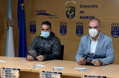 Narón, 28 de novembro de 2020. O concelleiro de Promoción Económica, David Pita e Fracisco Javier Castro, representate da AVV Os Irmandiños do Val, anunciaron a próxima celebración, os días 5 e 6 de decembro, dun novo curso sobre “Métodos de conservación”. A convocatoria terá lugar nas instalacións do Centro Cívico Social do Val entre as 10.00 e as 14.00 horas. As prazas, tal e como indicou Pita, son limitadas, atendendo ás novas indicacións sanitarias sobre aforo para este tipo de eventos, e cubriranse por orde de inscrición. As persoas interesadas en acudir poden anotarse, de balde e ata o vindeiro día 3 de decembro a través do correo electrónico: promocioneconomica@naron.es.