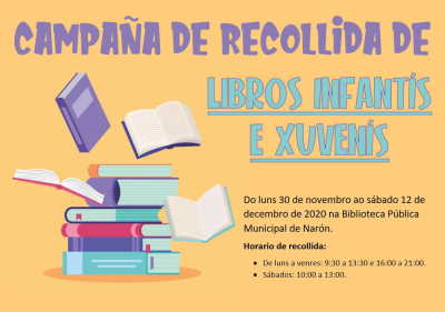 Narón, 30 de novembro de 2020. A concelleira de Bibliotecas, Mercedes Taibo, anunciou o inicio dunha campaña de recollida de libros infantís e xuvenís que se entregarán ao Centro de Recursos Solidarios de Narón para que as nenas e nenos atopen na súa árbore de Nadal un conto adaptado á súa idade.