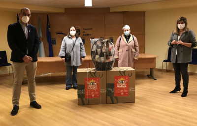 Narón, 21 de decembro de 2020. A alcaldesa, Marián Ferreiro, e o concelleiro de Promoción Económica, David Pita, entregaron hoxe as dúas primeiras cestas con produtos de Nadal sorteadas no marco da campaña “Nadal Narón 2020”, dirixida ao sector comercial da cidade. Juana María Santiago Quintía e Montse García Leira foron as gañadoras das cestas, polas compras realizadas nos establecementos Bioreona, Ivani e Bioreona, no caso de Juana, e nos de Rocío Rodríguez, Bioreona e Lazos, no de Montse.