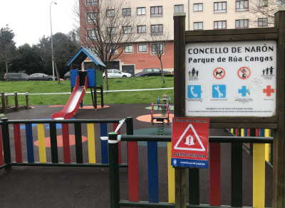 Narón, 28 de xaneiro de 2020. O Concello de Narón pechou todos os parques infantís e biosaudables do termo municipal debido ao empeoramento da pandemia pola Covid-19. No caso da cidade, ademais de acordoar estas instalacións para evitar o acceso ás mesmas, procedeuse a colocar sinalización en cada un deles advertindo que permanecen pechados debido á alerta sanitaria.