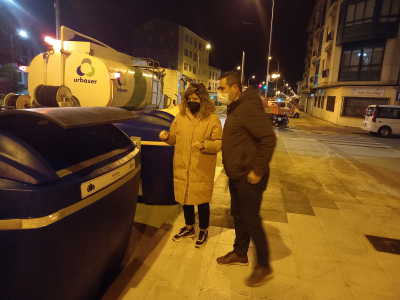 A alcaldesa, Marián Ferreiro, e o edil de Servizos, Ibán Santalla, estiveron presentes na colocación dos primeiros contenedores