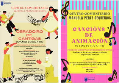 Os obradoiros de Cantigas e de Cancións de Animación realizaranse no Centro comunitario municipal Manuela Pérez Sequeiros
