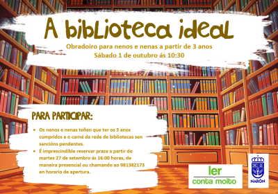 A BIBLIOTECA ABRIRÁ A VINDEIRA SEMANA O PRAZO DE INSCRICIÓN NA ACTIVIDADE "A BIBLIOTECA IDEAL"