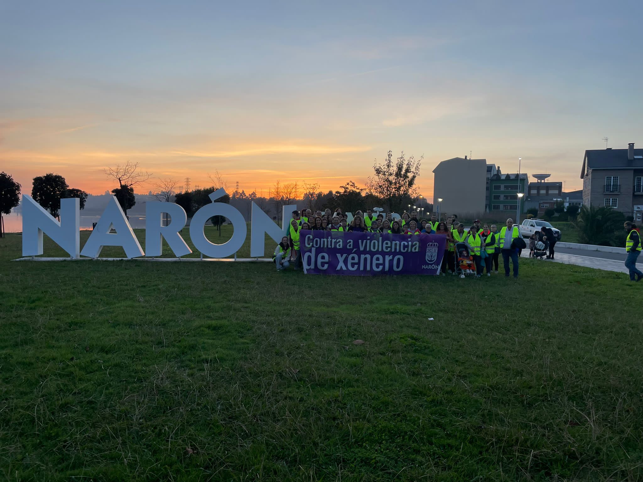 A andaina partiu ás 17:00 horas do parque do río Freixeiro, dende onde as persoas participantes se dirixiron, pola senda peonil e ciclista que enlaza Freixeiro co paseo marítimo de Xuvia, ata este último punto, a onde chegaron sobre unha hora máis tarde. O grupo chegou ata o quilómetro 100 do Camiño Inglés, o punto da cidade ¬–sinalizado pertinentemente- dende onde se pode partir cara a Compostela realizando o traxecto mínimo para obter a Compostela. Antes de rematar a convocatoria, realizaron unha imaxe de grupo xunto ás letras do paseo de Xuvia coa pancarta oficial do Concello en contra da violencia de xénero.