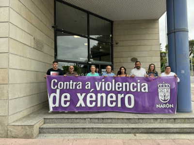 Narón, 8 de agosto de 2024. O alcalde accidental, Manuel Ramos, presidiu este mediodía, ás 12.00, a concentración convocada ante o Consistorio na que se gardou un minuto de silencio en condena do crime machista que lle custou a vida a pasada semana a Mercedes Ríos Muñiz, veciña de Labañou (A Coruña) de 74 anos e asasinada polo seu home, de 78 e actualmente en prisión.
