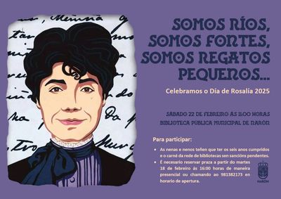 Narón, 17 de febreiro de 2025. A Biblioteca municipal abrirá mañá martes o prazo de inscrición para poder asistir ao espectáculo “Somos ríos, somos fontes, somos regatos pequenos…” organizado con motivo da celebración do Día de Rosalía. A convocatoria terá lugar o vindeiro 22 de febreiro, ás 11:00 horas, nas citadas instalacións municipais, tal e como recordou a edil responsable da área, Olga Ameneiro.