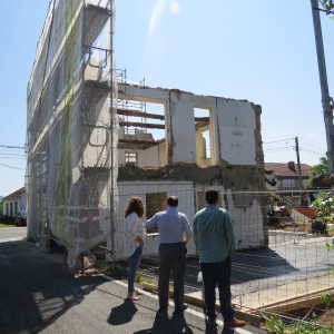 Narón, 24 de xuño de 2016. O alcalde de Narón, José Manuel Blanco, e os edís de Obras e Cultura, Pablo Mauriz e Marián Ferreiro, respectivamente, desprazáronse ata a parroquia de Pedroso para comprobar o avance das obras do Centro de Dinamización Sociocultural da parroquia, ubicado na antiga Reitoral. A empresa Vila Miño Construcciones é a encargada de executar os traballos, que se adxudicaron por un importe de 270.242,28 euros, o que supuxo un aforro duns 90.000 euros con respecto ao importe da licitación. A Deputación da Coruña sufraga o 80% do custe total dos traballos, se ben o 20% restante apórtao o Concello. O rexedor local destacou o feito de que “este mesmo ano os veciños e veciñas de Pedroso poderán contar cunhas amplas instalacións nas que desenvolver unha gran variedade de eventos, tanto no interior da edificación actualmente en obras como nas inmediacións da mesma, ao contemplar o proxecto o acondicionamento da parcela na que se ubica o inmoble”.