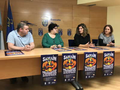 Narón, 25 de outubro de 2018. A alcaldesa de Narón e presidenta do Padroado da Cultura, Marián Ferreiro, a concelleira de Cultura, María del Carmen Espada, e o secretario e a tesoureira da Agrupación Veciñal de San Mateo de Trasancos, José Manuel García e Laura Fernández, respectivamente, presentaron hoxe os actos do programa conmemorativo do Samaín. A cita terá lugar o vindeiro 31 de outubro no Centro Cívico Social de San Mateo de Trasancos e nas súas inmediacións e na organización da mesma colaboran o Concello e a citada Agrupación Veciñal de San Mateo. A alcaldesa destacou o éxito desta convocatoria, que reúne cada ano na citada parroquia naronesa a centos de persoas de Narón e tamén doutros concellos da comarca. Así o corroborou José Manuel García, que recordou que o ano pasado acudiron a este evento algo máis de duas mil persoas.