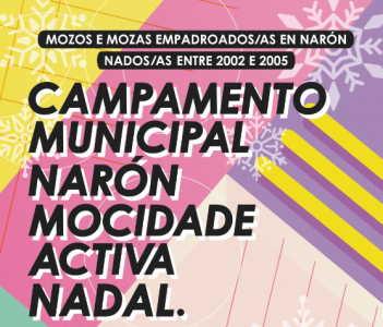Narón, 30 de novembro de 2018. A concelleira de Mocidade e Novas Tecnoloxías, Natalia Hermida anunciou a apertura, o luns día 3 de decembro, do prazo de inscrición no campamento municipal Narón Mocidade Activa Nadal. A edil avanzou que esta convocatoria se celebrará os días 22, 26, 27 e 28 de decembro nas instalacións da Casa da Mocidade, na Gándara, en horario de 10.00 a 14.00. Poderán participar un máximo de vinte mozas e mozos, que deben estar empadroados en Narón e ter entre 13 e 16 anos, tal e como explicou Hermida.