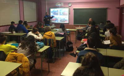 Narón, 15 de xaneiro de 2019. Alumnado de segundo e cuarto curso de educación Secundaria de Narón participa nas charlas “A importancia dun segundo”, promovidas polo equipo de Educación Viaria do Concello de Narón, que imparte as sesións xunto con voluntario, Tino Seoane. As charlas impártense en horario de mañá nos institutos das Telleiras e Terra de Trasancos e tamén nos colexios Ayala, O Feal, Jorge Juan e Santiago Apóstol e acudirán, en seis xornadas, un total de 270 alumnos e alumnas dos citados cetros educativos. Esta iniciativa impúlsase a través da Concellería de Seguridade Cidadá, que preside o edil Guillermo Sánchez Fojo, que destacou o éxito que están acadando. “Están tendo unha excelente acollida entre o alumnado, que interactúa en todo momento co persoal do equipo de Educación Viaria e tamén co voluntario que os acompaña, ao que quero agradecer especialmente a súa colaboración nesta iniciativa, de gran importancia á hora de concienciar aos rapaces e rapazas”.