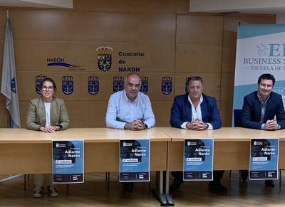 Narón, 17 de outubro de 2022. O Concello abriu hoxe o prazo de inscrición na segunda edición do programa “Adiante Narón”, unha iniciativa sobre emprendemento que se desenvolverá en 16 módulos de tres horas de duración cada un e impartidos por expertos en diferentes áreas. O concelleiro de Promoción Económica, David Pita, presentou a convocatoria acompañado por Venancio Salcines, presidente da EF Business School, Juan Martín e María Uceda, director de innovación e directora de desenvolvemento de negocio, respectivamente, da cidada entidade e deseñadores do programa desta convocatoria. Dende o colectivo destacaron “o apoio incondicional do Condello de Narón ao sistema emprendedor como fonte de riqueza económica, modelo de xeración de postos de traballo e desenvolvemento económico sostible”.