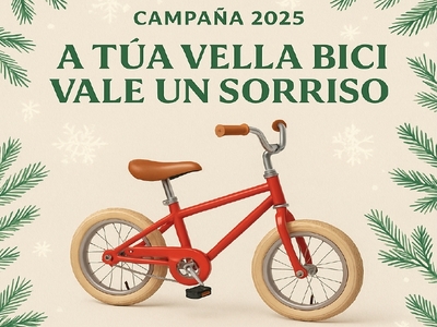 Do 1 de decembro ao 4 de xaneiro, desenvolverase a campaña solidaria “A túa vella bici vale un sorriso”, destinada a recoller bicicletas, patinetes e cascos en bo estado para darlles unha segunda vida. O material pode entregarse nos centros escolares participantes ou directamente na oficina de Seguridade Vial do Concello.