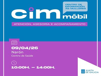 O Concello informa da visita este xoves a Narón dunha unidade móbil do servizo de Centros de Información á Muller (CIMs Móbiles), un recurso da Xunta de Galicia destinado á atención e apoio ás mulleres, especialmente no eido da loita contra a violencia de xénero.