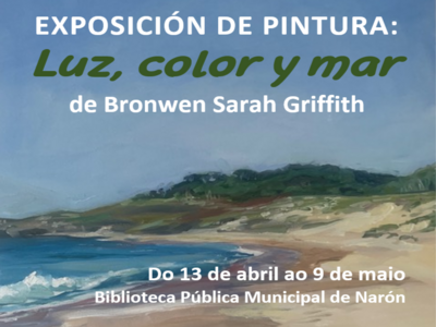 O Concello de Narón inaugura este luns ás 17:00 horas na Biblioteca Municipal a exposición “Luz, color y mar”, da pintora Bronwen Sarah Griffith, unha proposta artística que se enmarca na programación especial de "Abril, mes do libro".