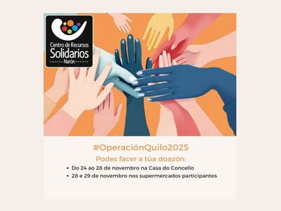 O Centro de Recursos Solidarios (CRS) de Narón, en colaboración co Concello, impulsa unha nova 'Operación quilo' coa intención de reforzar o apoio ás familias que atravesan momentos de especial dificultade.