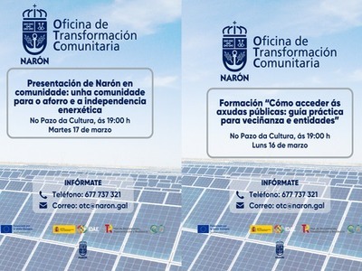 O Concello de Narón, a través da Oficina de Transformación Comunitaria, continúa a desenvolver accións informativas e de proximidade para achegar á veciñanza as posibilidades de aforro e eficiencia enerxética, así como para fomentar a participación en iniciativas colectivas relacionadas coa transición enerxética.